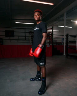 Exclusive Gel Enforced Lining® and tri-layered foams provides incredible results. GEL® lining delivers a winning layer of custom form fit and impact resistance for power, protection and winning performance. GEL® infused cuff and palm provides ideal support with extended coverage. Nylon weave mesh palm insert with moisture wicking hand compartment liner helps deliver cool, dry and comfortable training. Full seatbelt wraparound nylon wrist strap with hook-and-loop closure keeps gloves firm and secure. Crafted from select hides of full grain leather for champion results.